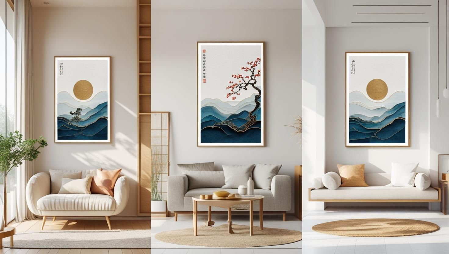 ACTION : Conçois une image présentant une œuvre zen dans différents intérieurs.